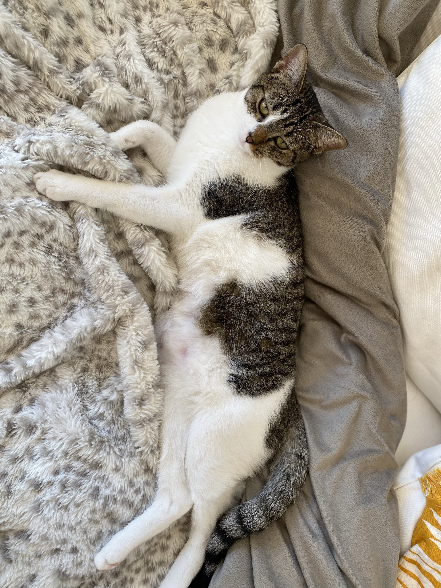 Prácticamente va perdiendo el estrés de entrar en una casa nueva y prácticamente ya es el dueño de todo. Vemos la TV desde el sofá siempre juntos y ya dormimos en la misma cama porque no se separa de mi ni un segundo.