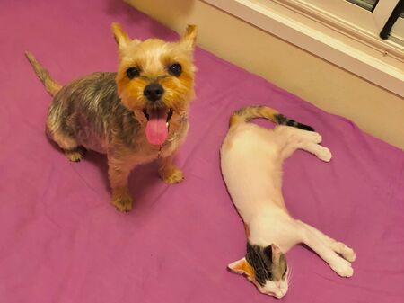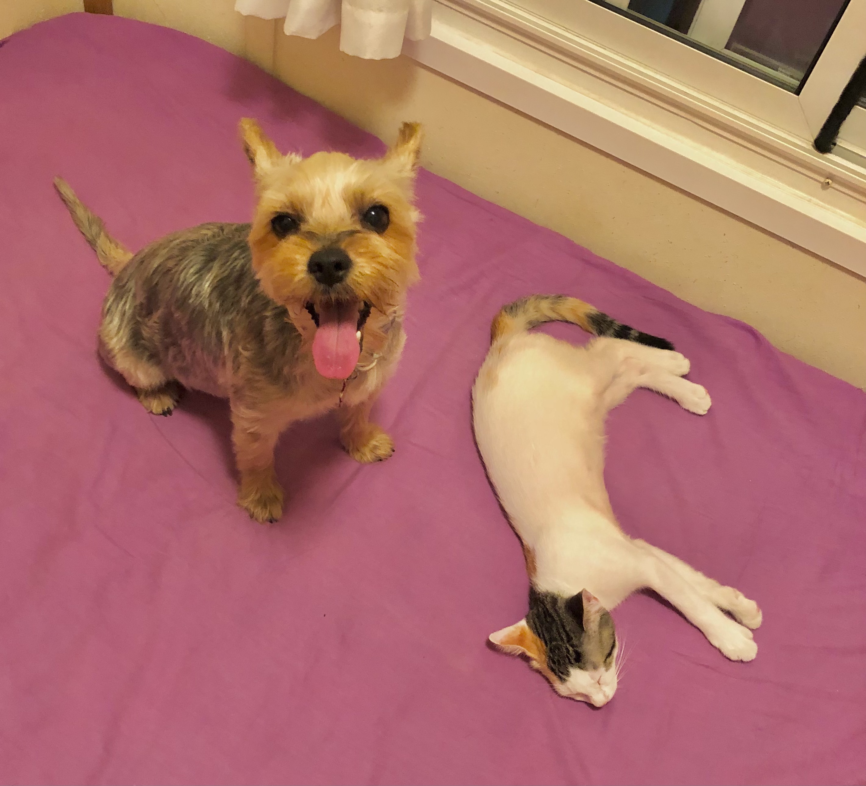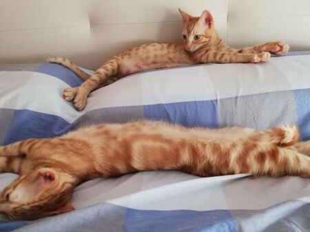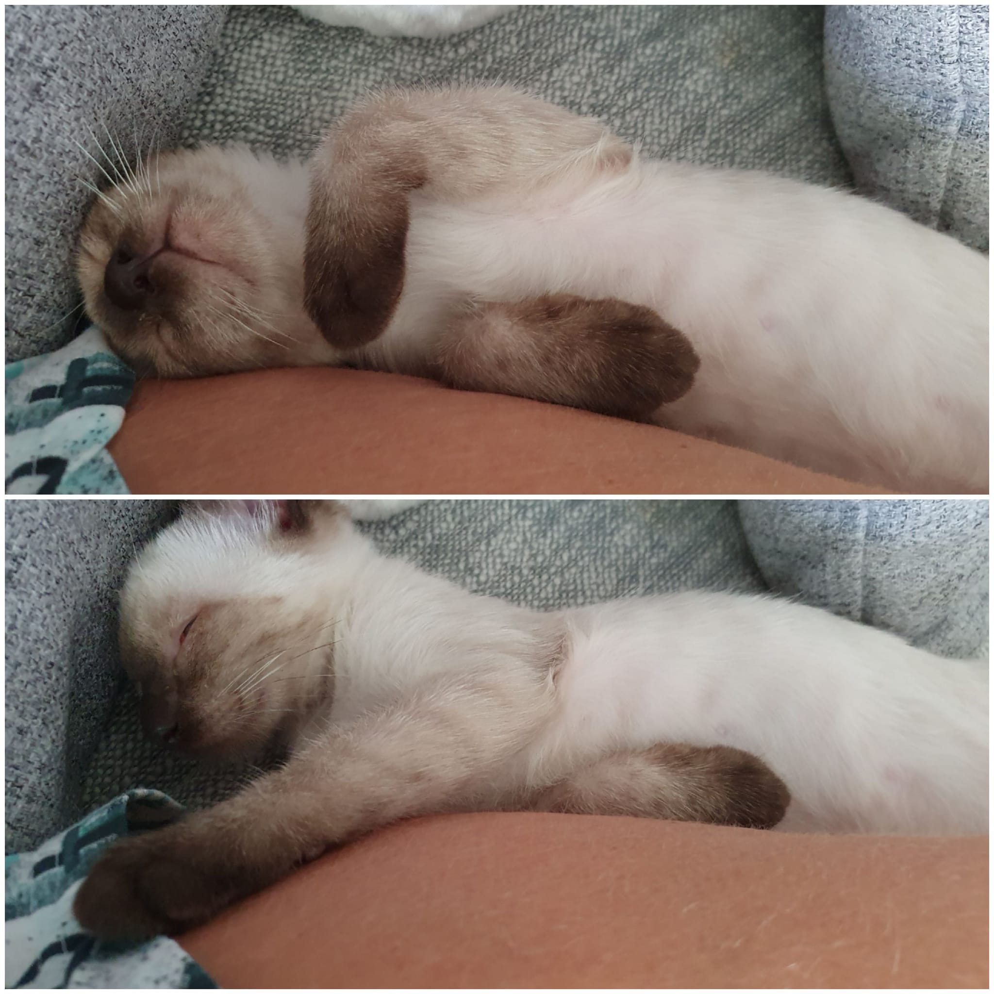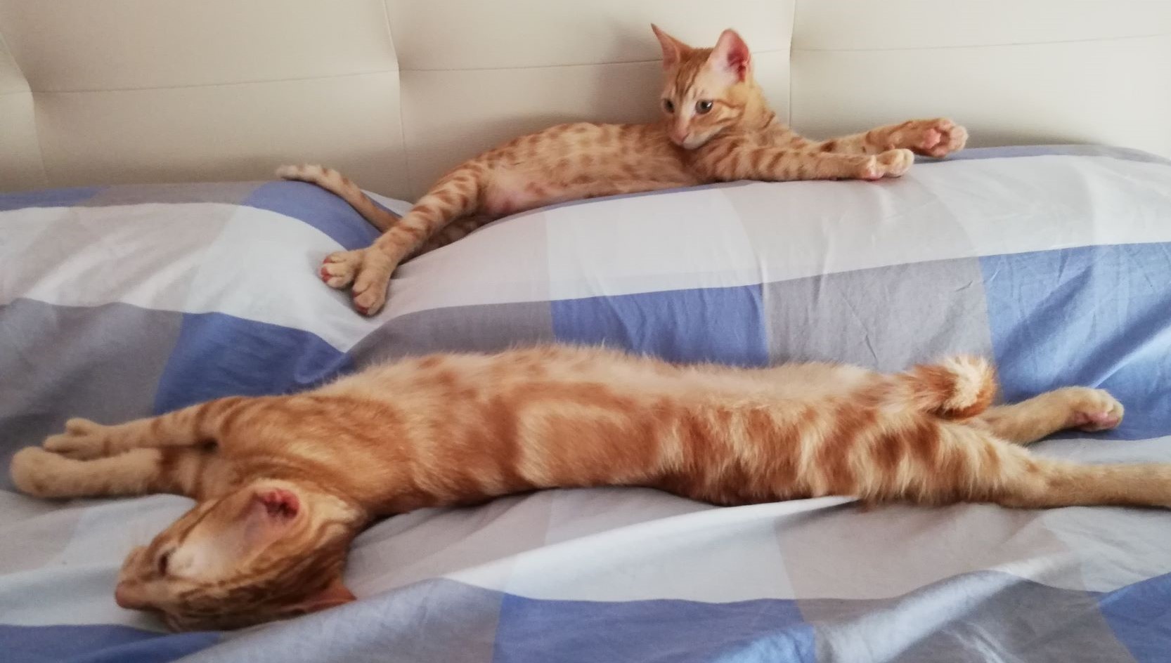 They are completely lovely and chase each other around the house every evening, play-fighting. When either of them needs comfort – the other is there for them – giving them a good lick.