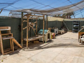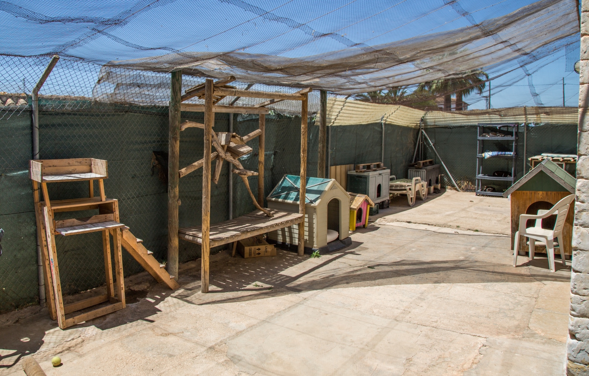 We have the idea to split "Jaula 1" (J1 - the main adult area) into two sections. One for the adults to remain outside, and a second smaller second area for our teenagers, who missed the adoption season in 2018 and are still with us. To enable us to do this, we need to take away the inside sleeping area of the adults living in J1. By closing off the smallest side of their area, we can fence in an outside area to make a new garden for the young, energetic cats. They will then take over the inside bedroom of the adult cats. Breaking down a window area and replacing it with a door, along with some metal fencing to close the area off, is not the big task. The challenge comes providing new sleeping areas for our grown up cats. That's where you come in.