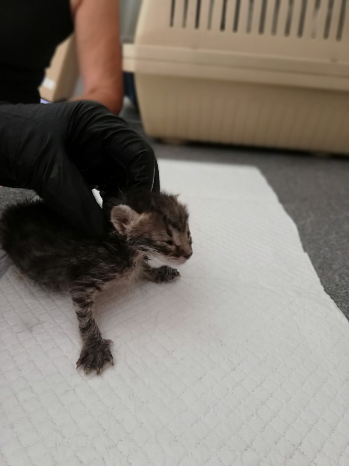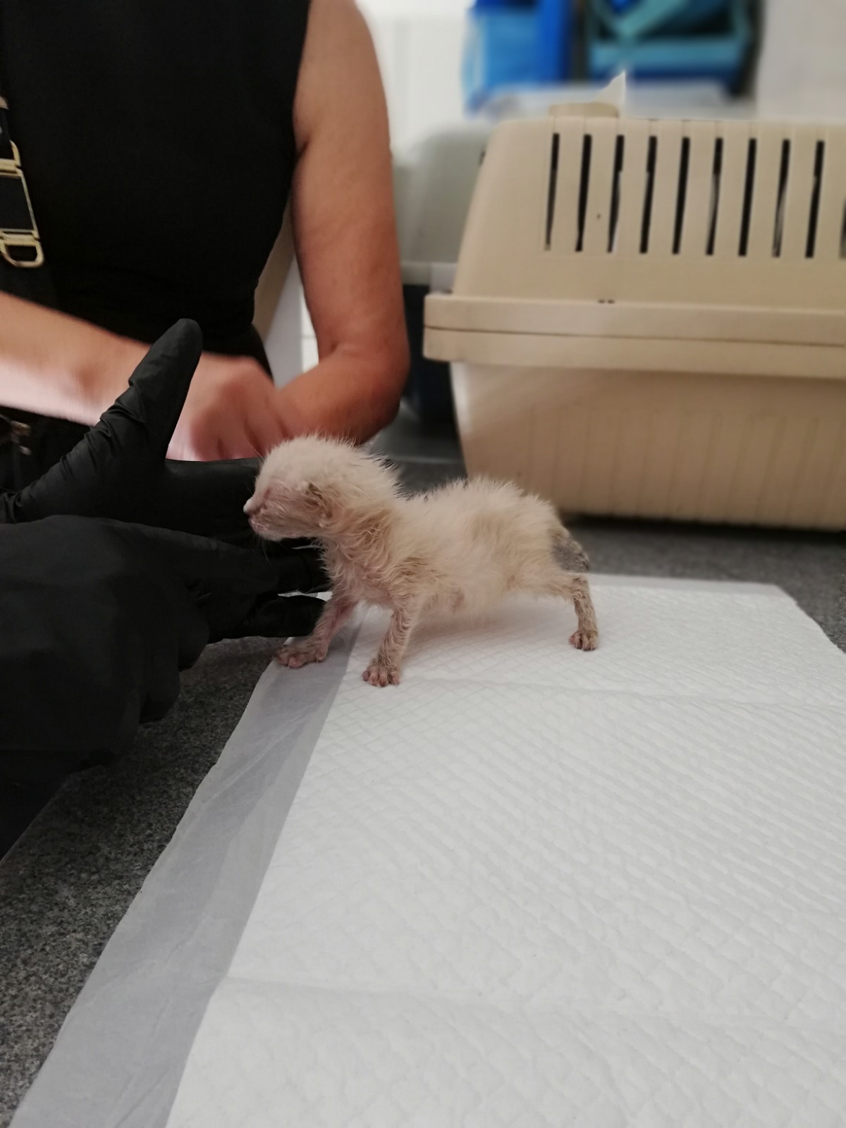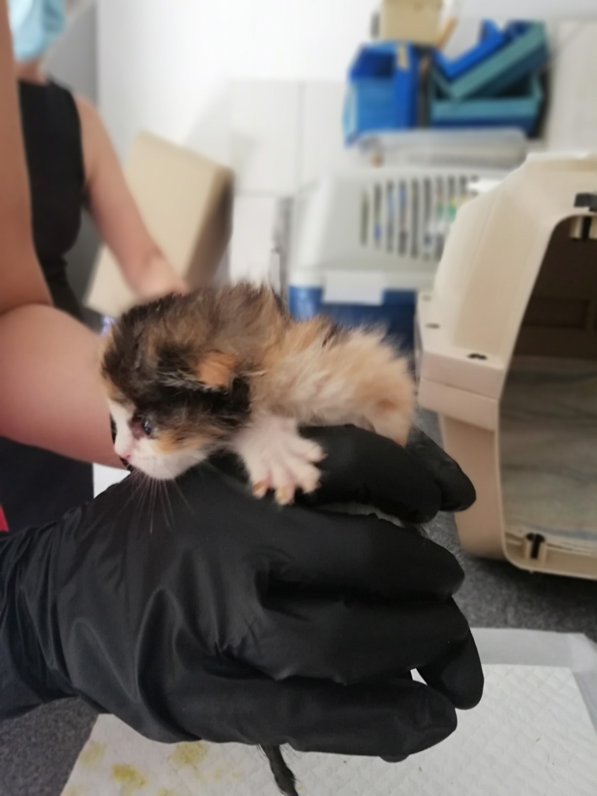 Unfortunately, we have to tell you that in the last 24 hours, 2 of the 3 babies rescued from the rubbish bins on Saint John's Day have died. They were being cared for by one of our best care team and were gathering strength day after day. But last week they started having diarrhoea and having to cope that that, not having a good immune system, it was too much. It is always a risk for newborn animals who are abandoned, their chances of survival are really very small. We are very sad that we could not save them, but we know we tried as hard as we could. The good news is, one of the kittens is still alive. She is a fighter and her name is Hope!