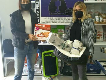 After the successful fundraising raffle organised last month, we were able to meet the two winners, under Covid conditions. Marisa came to collect the first prize at the vet clinic La Marina, and the second prize was given personally to Yanine a little later as she was unable to come and collect it. The photos below show how thrilled they are to have won.