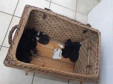 There are 6 babies, about 4 weeks old, who had been with their mother until some unforgiving person took them to the rubbish bins. How many times do we have to say that this does not solve anything? The poor mother cat is going to go into heat immediately, to get pregnant again and repeat the sad story over and over again. The solution is to neuter the mother cat and stop that loop once and for all!