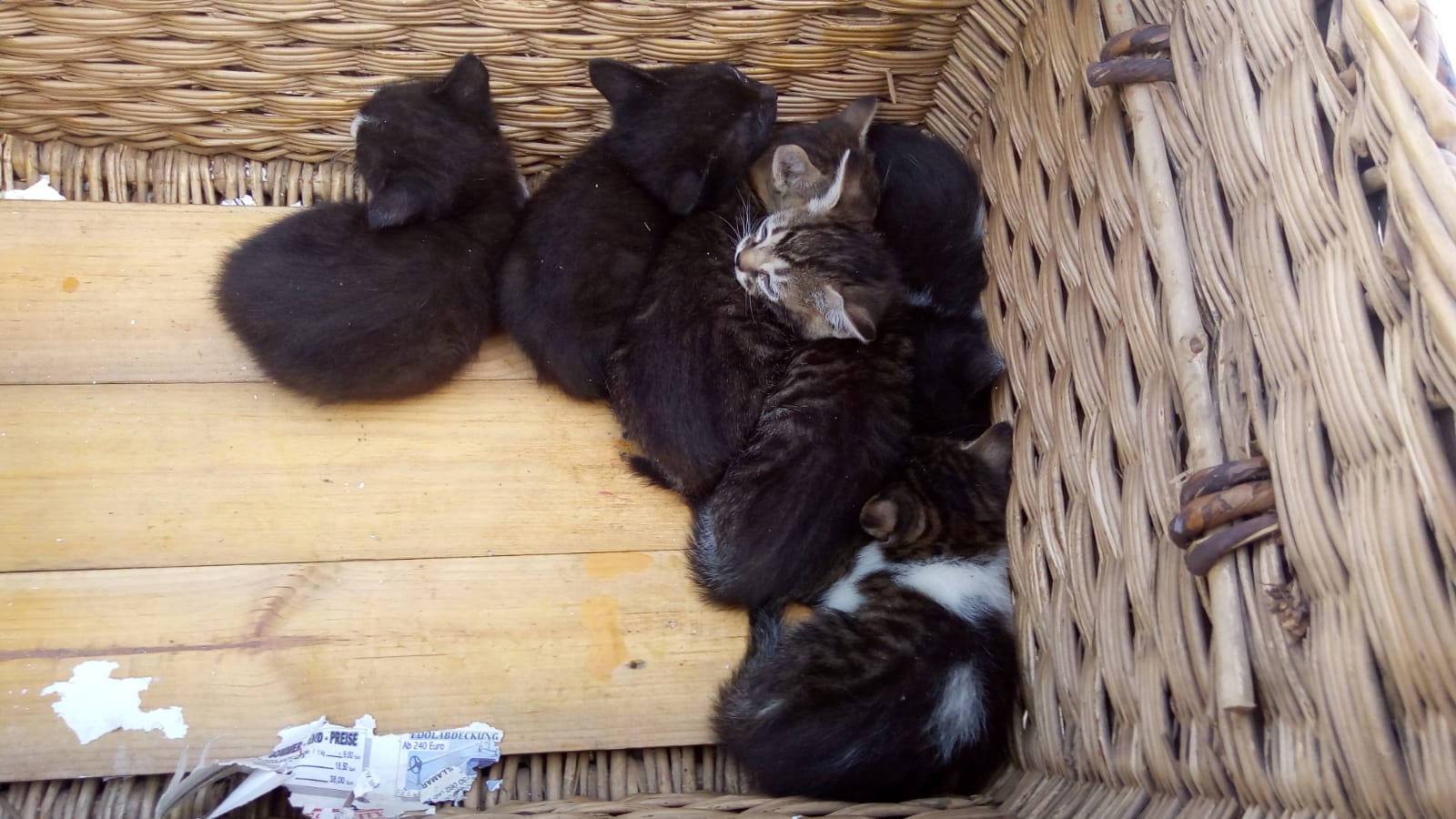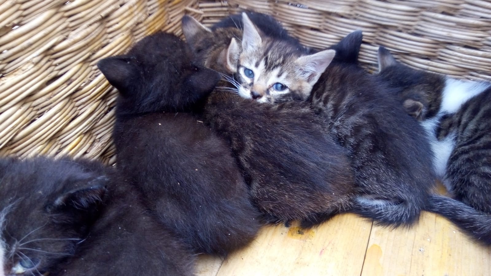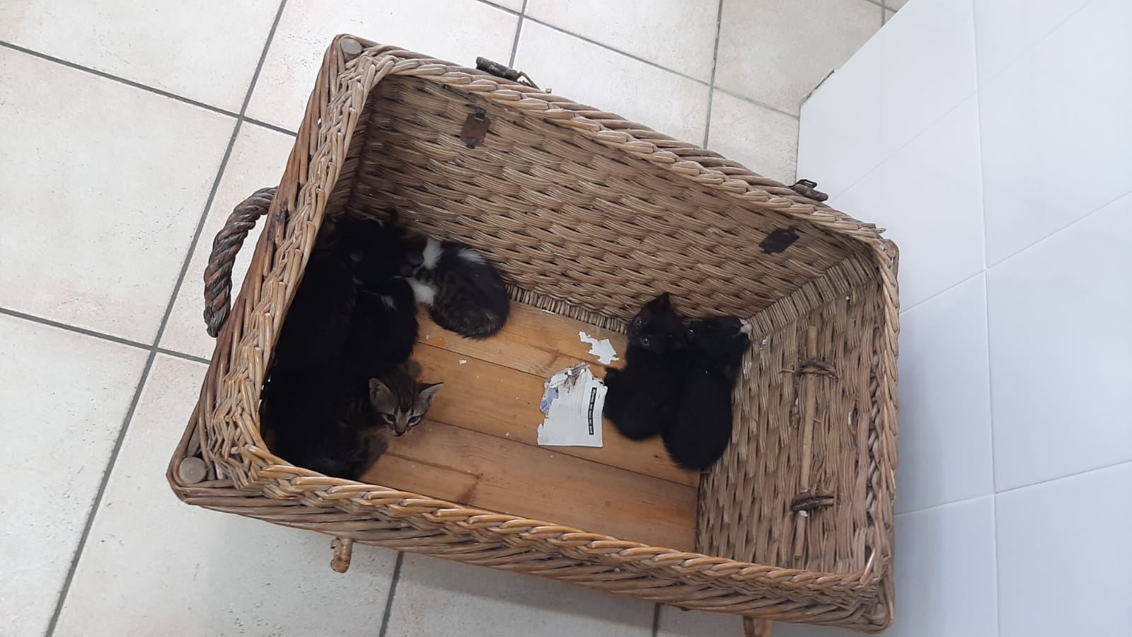 On Wednesday, we received information that someone had left this basket of kittens next to the rubbish bins near the crane company in the Denia industrial estate.