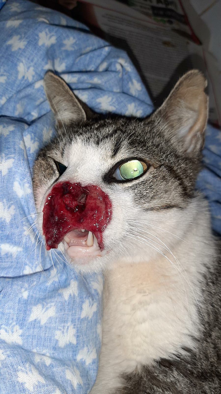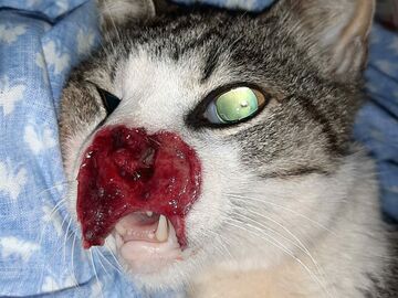 After several days trying to capture it without success, we have finally been able to catch this poor cat. The cancer in his nose had progressed in such a way that it had already destroyed half of his face. At least we have been able to help him now, avoiding more days of suffering and the agonising death that awaited him. Sometimes it is the only thing we can do for them in their last stages of life. RIP young man.