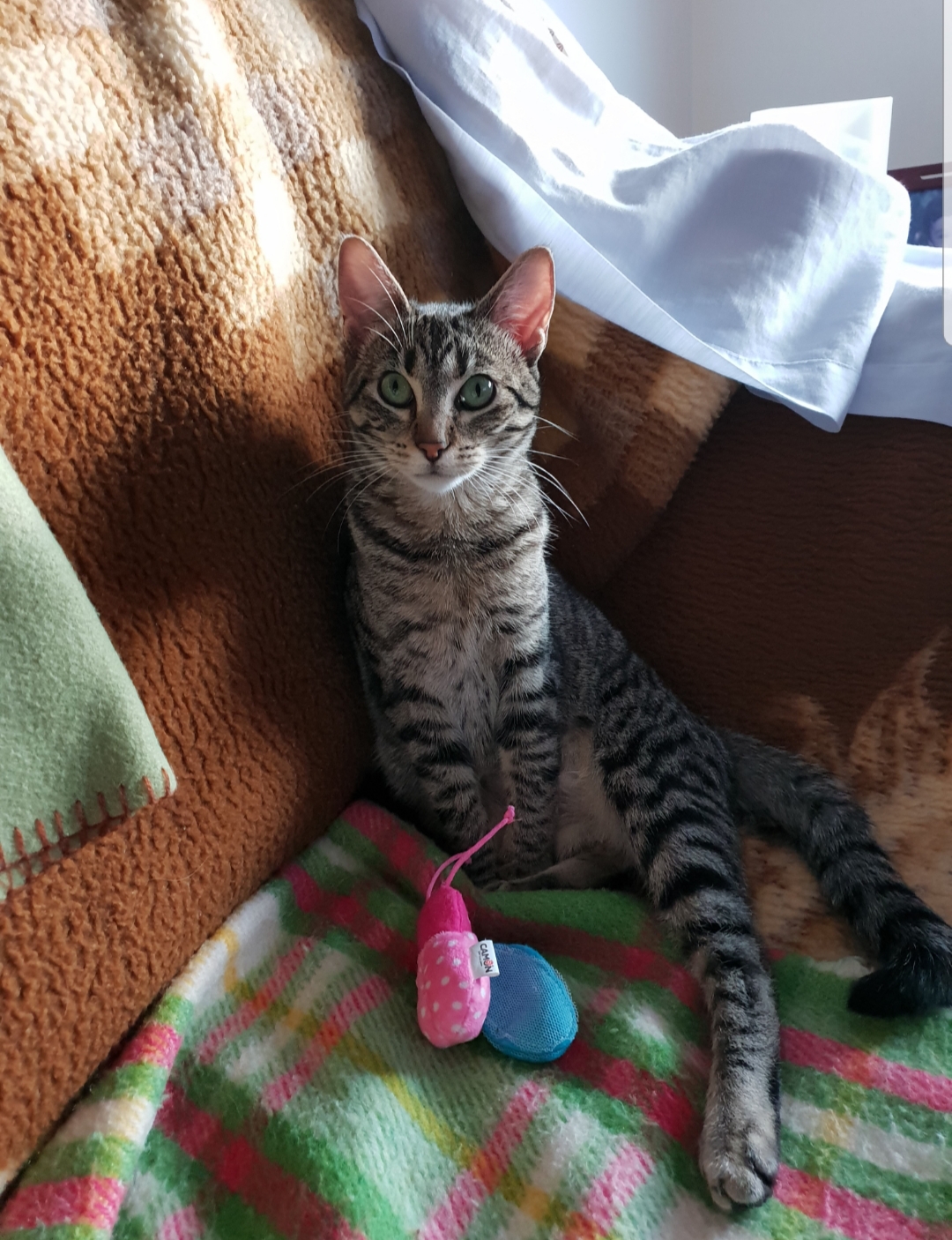 Es una gatita muy dulce y juguetona, nos divertimos mucho jugando con ella y le hemos cogido mucho aprecio enseguida, la verdad es que se ha adaptado muy rápidamente a su nuevo hogar, ¡Estamos muy felices!