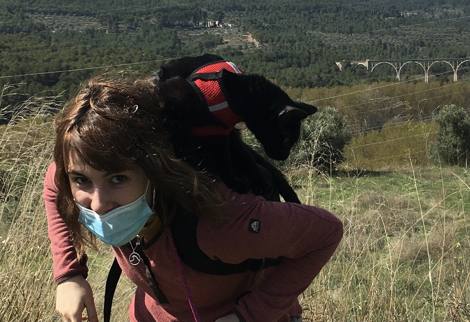Además, es un gato aventurero, suele ir con su arnés o dentro de mi mochila y vamos a hacer rutas, a la playa, en bici y a hacer pádel surf juntos. Vivimos la vida a tope y nos encanta vivir aventuras.