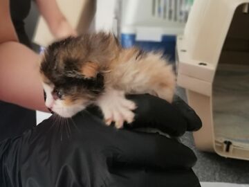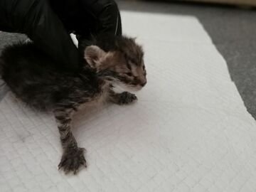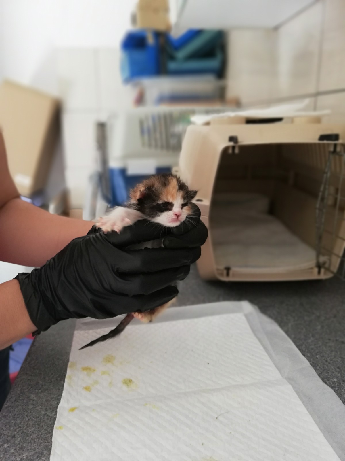 Unfortunately, we have to tell you that in the last 24 hours, 2 of the 3 babies rescued from the rubbish bins on Saint John's Day have died. They were being cared for by one of our best care team and were gathering strength day after day. But last week they started having diarrhoea and having to cope that that, not having a good immune system, it was too much. It is always a risk for newborn animals who are abandoned, their chances of survival are really very small. We are very sad that we could not save them, but we know we tried as hard as we could. The good news is, one of the kittens is still alive. She is a fighter and her name is Hope!