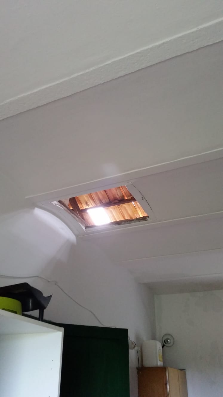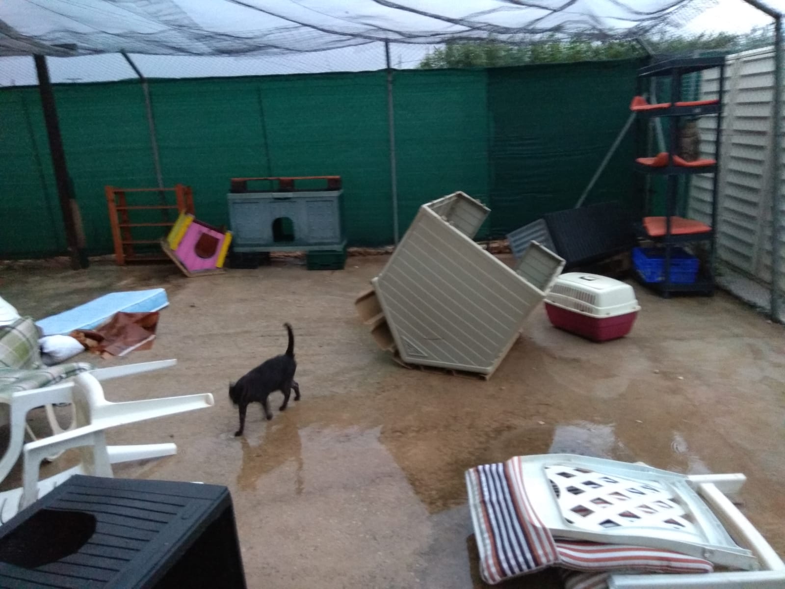 The roof of our house lost several tiles and we have significant structural damage. It looks like it might collapse at any moment, and we do not know what will happen when it rains again tonight. Water has run downs the walls and into the cages upstairs. In addition, all outside areas have been badly affected. We have spent the day repairing things and making it safe again for the cats, to endure the next few days until the storm ends. We were halfway through the renovation of both the new and old areas, it just shows that the old house is not strong enough to resist hard rain and protect our cats and volunteers. We need an urgent solution from the City Council - for once and for all - they need to provide us with a proper shelter and acceptable conditions!